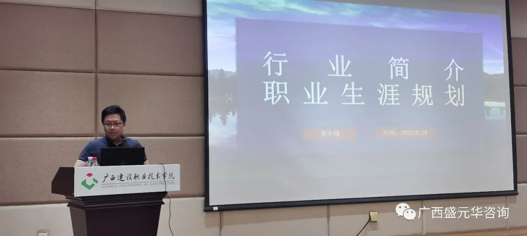8月28日下午,受廣西建設職業(yè)技術學院管理工程學院邀約,廣西盛元華總經理助理、總工程師謝宇翔出席參加了管理工程學院2023級造價班全體新生的開學第一課,并在課上向新生們做了關于職業(yè)培養(yǎng)的專業(yè)教育。