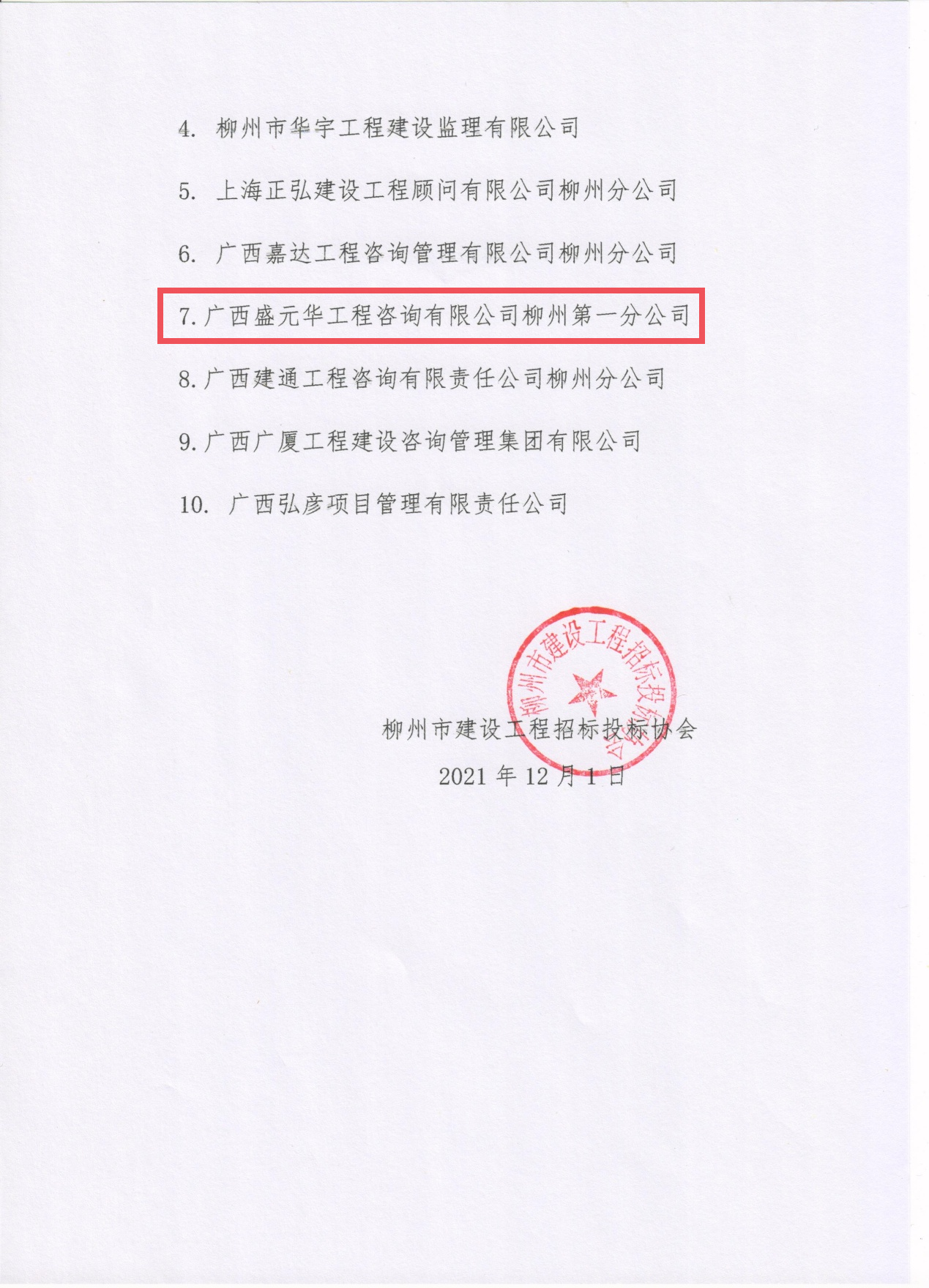 | 喜訊!熱烈祝賀廣西盛元華集團旗下柳州一分公司榮獲2020年度"柳州市建設(shè)工程招標代理行業(yè)先進單位"的榮譽稱號 |